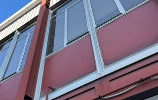 Entrambi gli edifici hanno un involucro curtain wall e strutture a telaio, in acciaio il blocco uffici di due piani, e in calcestruzzo il corpo di cinque piani. Nel primo caso il curtain wall, è costituito di pannelli in lamiera con serramento integrato. Nel secondo edificio, le facciate continue sono composte di un telaio metallico e di elementi sottofinestra opachi con sovrastanti moduli vetrati.