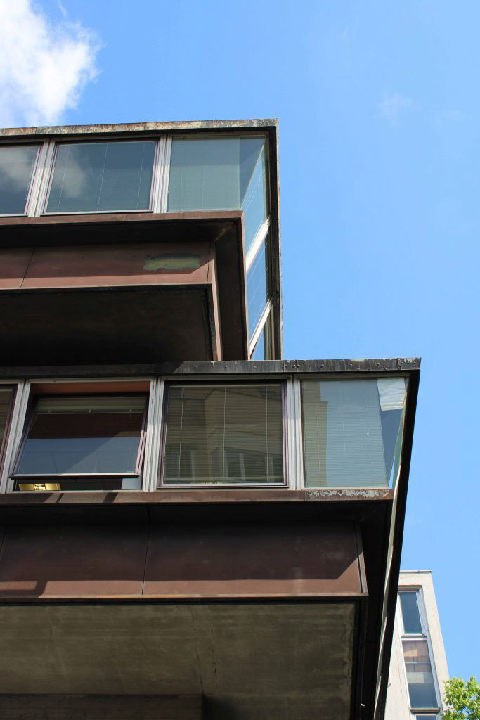 L’edificio si sviluppa esaltando e assumendo come vero e proprio tema compositivo il duplice ordine di funzioni che ospita al proprio interno: spazi pubblici e uffici. I primi sono risolti mediante struttura in cemento armato di grande passo realizzata con setti; i secondi sono strutturati con sistema modulare a piccole campate in acciaio. I due sistemi si sovrappongono grazie all’inserimento di una piastra intermedia, concepita come un “suolo artificiale”. L’edificio si sviluppa su 6 piani, ciascuno con una superficie coperta di circa 350 mq. L'altezza di ogni piano varia da un minimo di 2,46 m a un massimo di 3,70 m. La volumetria complessiva è pari a 7.500 mc circa