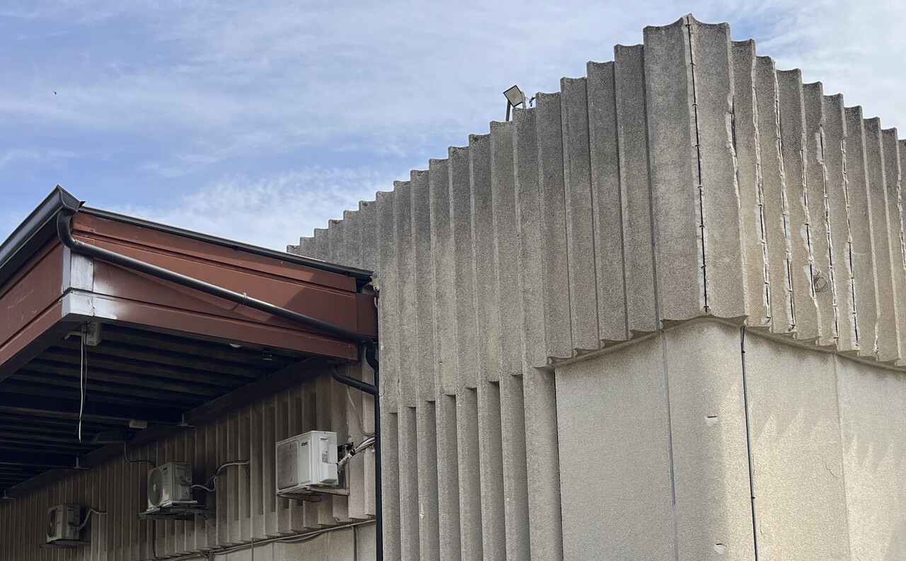 La struttura è costituita di pilastri e travi di calcestruzzo armato. I solai sono composti da coppelle nervate di calcestruzzo solidarizzate in opera. Le pareti esterne sono costituite di pannelli di cemento collegati alla fondazione e alla copertura. I pannelli, larghi 120 cm e alti 5,55 metri, sono a base di un impasto di cemento bianco, pigmenti coloranti e inerti di pietra naturale. Le pareti interne sono composte di un telaio metallico tamponato da lastre di fibrocemento.