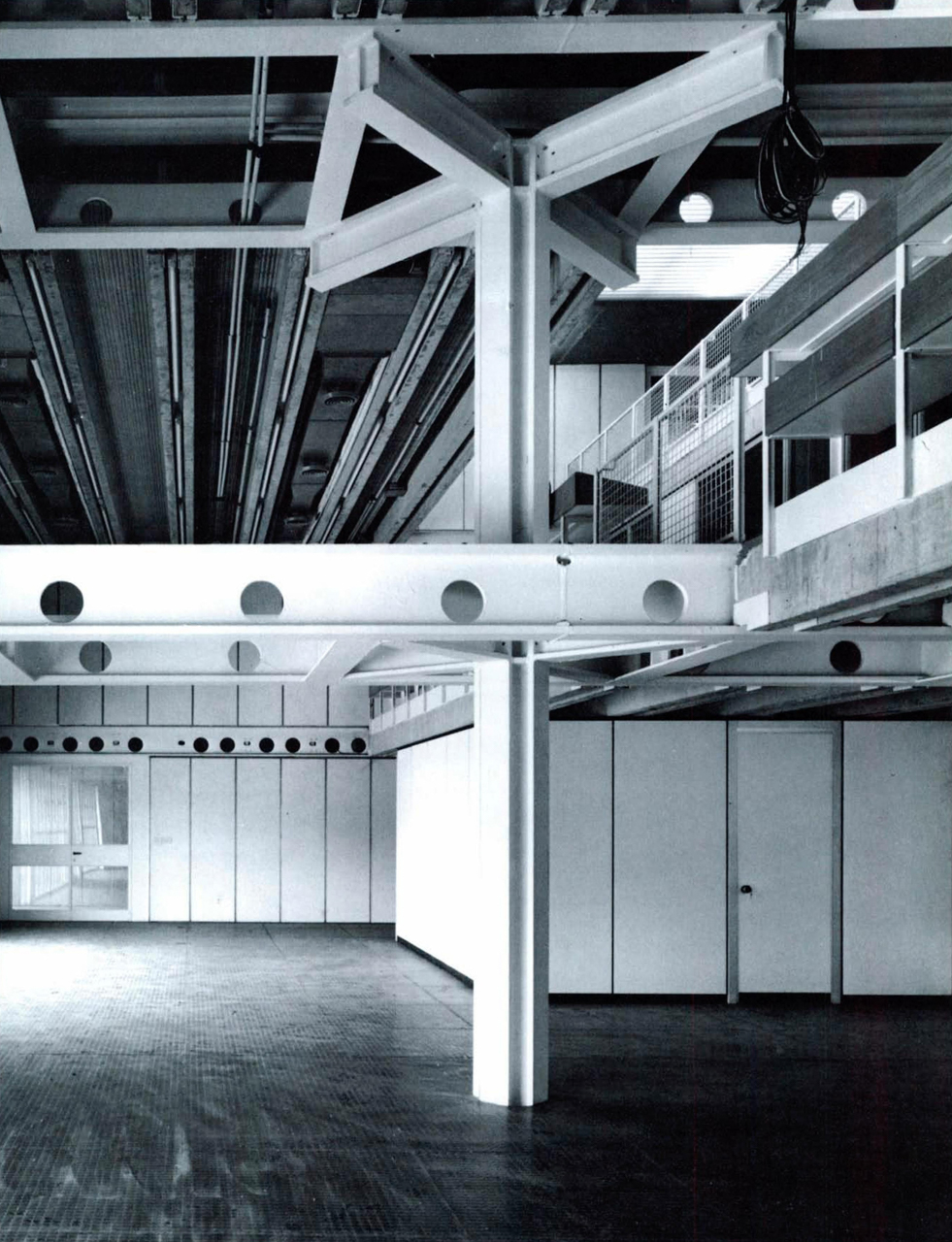 La struttura è composta di pareti di calcestruzzo armato gettato in opera e, all’interno, di due colonne d’acciaio. I solai della zona servizi sono gettati in opera, e per il resto sono impiegati tegoli prefabbricati di calcestruzzo armato precompresso. Sui fronti interni dei cubi alti si trova una porzione di curtain wall con telaio metallico e vetro singolo. La copertura integra un sistema di lucernari e frangisole. I caratteri costruttivi essenziali dei cubi 17D e 18D sono analoghi.